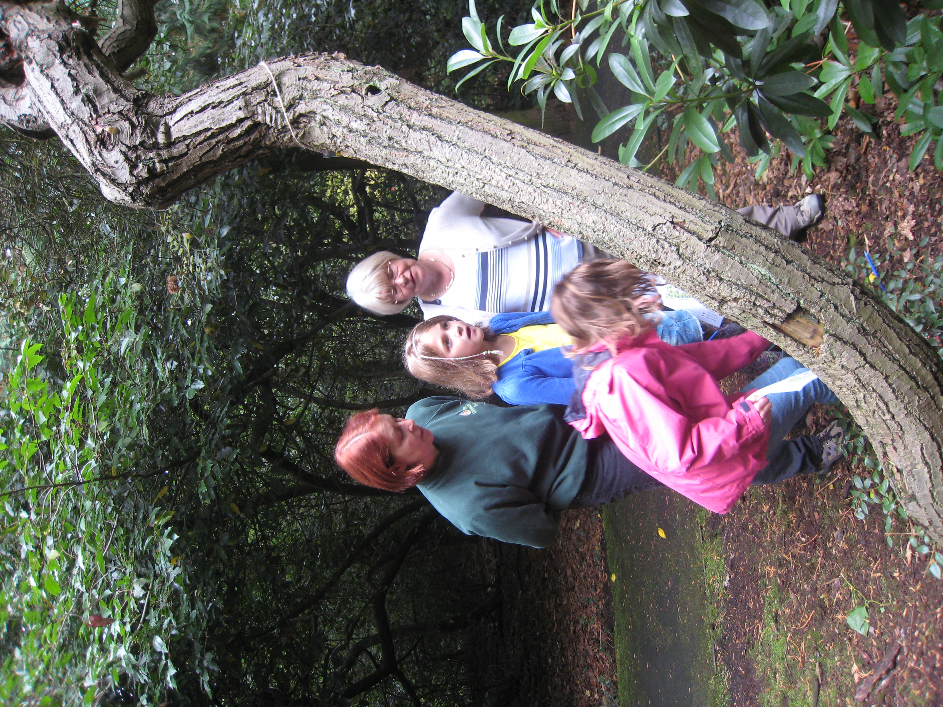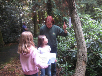 There were three activities: they were given a map of the wood, showing the trail to follow, plus a sheet with pictures of eight different leaves and the names of the trees they came from. The aim was to find those leaves in the wood and stick them on the pictures. Afterwards there were leaf pictures to colour in and take home. The second trail was marked with photos of birds that are commonly found in Knolls Wood. The children had to find them and identify the birds. Not as easy as it sounds because only a part was shown, not the whole bird. Of course, there were prizes for all, plus refreshments.