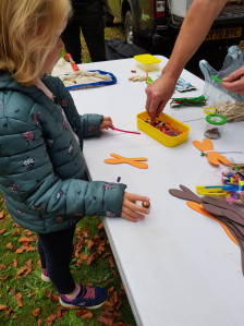 This year the children’s event was held in the school half-term week. The day started wet but luckily brightened up as the youngsters arrived, ready to build their own bugs. Using coloured pipe cleaners, fluffy balls and even clothes pegs, they made an assortment of caterpillars and wasps, adding wings, antennae and eyes as the finishing touch (see the photo).