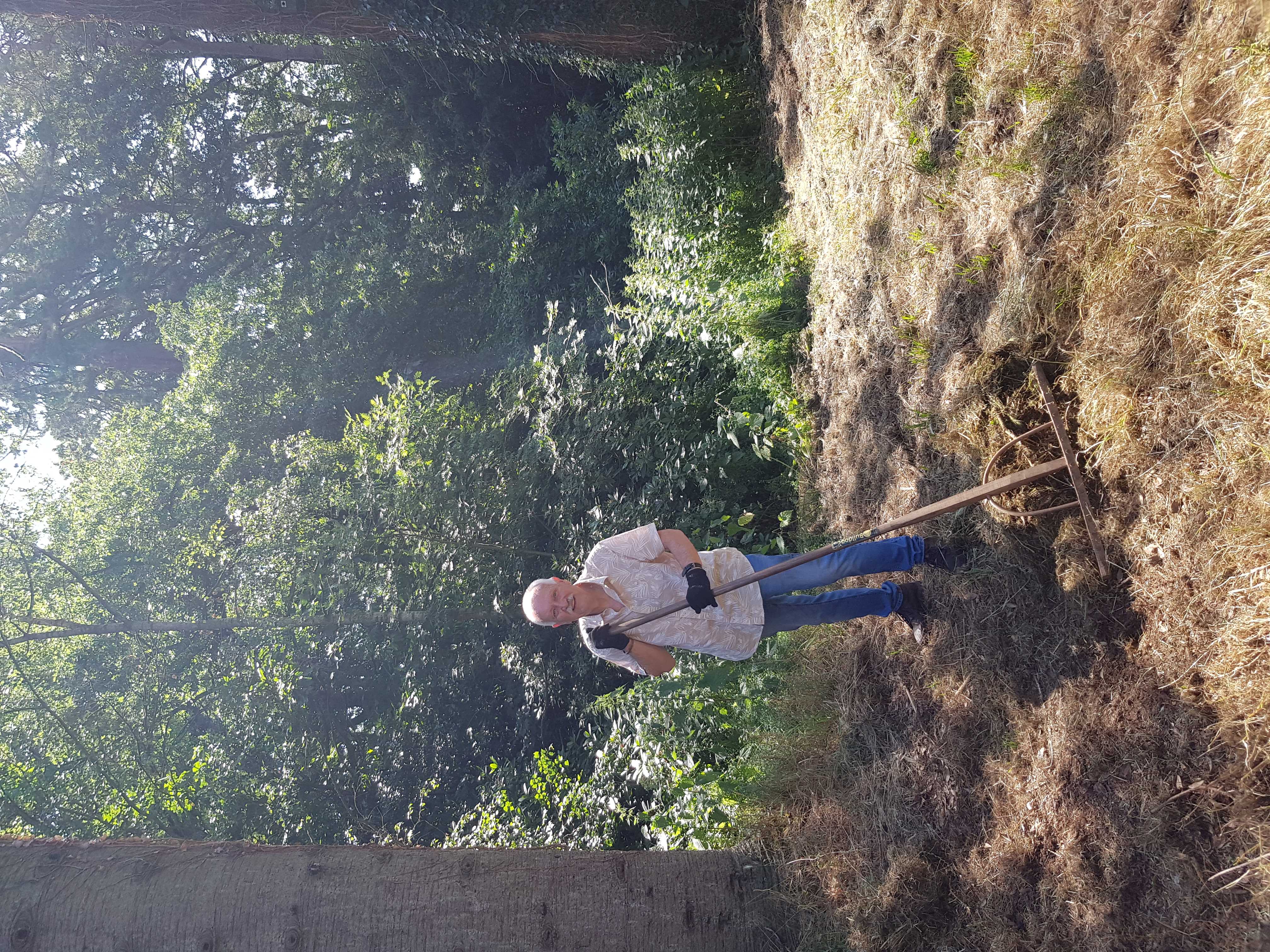 It’s often the hottest day of the year when we are set the task of raking the avenue grass borders. However, summer being the wet and grey season it is so far, we didn’t have such a roasting time. It was warm though, and those that set to it with fervour did get a sweat on, but the great thing is that each activity we take on can be tailored to the individuals own ability and preference. We chatted, we raked and we chatted a bit more, and then we had a tea break with treats. Thank you Pierre, our Greensand Trust Ranger.