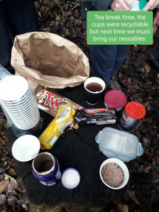 It was a chilly day but you never feel it when you get going and Pierre, our Greensand Trust ranger, brought the Kelly kettles so we had a welcome hot brew at break! (and Christmas themed Popdots from the Co-op)