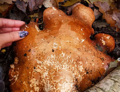 We were delighted to assist Em Robinson lead a fungi walk around our wood. Em came to talk about fungi at our AGM in 2023 and has since started leading walks where she is based in London - all sold out! As far as we know, there are no other guided fungi walk events happening in our area, and Em, who worked for several conservationist charities, conducts surveys for her local nature reserves regularly so we were excited for the experience to come. Em imparted a wealth of knowledge at every stop, we were fascinated to discover how many different types can be found in such a small space and we observed more than 20 species! (plus more on the walk back, birds nest for example, eeeek!). It was our delight to see people revel in wonderful nature and connect with our green space; it was a wholly informative and enjoyable experience. We discovered Rosy bonnet, bonnet mold (on the brown mushroom), Olive shaggy parasol being sniffed, and Dog stinkhorn framed with a grin. The full list of fungi we found is below and more photos on our Instagram page. You can follow learn more in bitesize snippets by following Em's blog at Fight for Wildlife